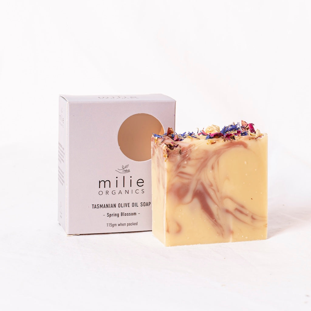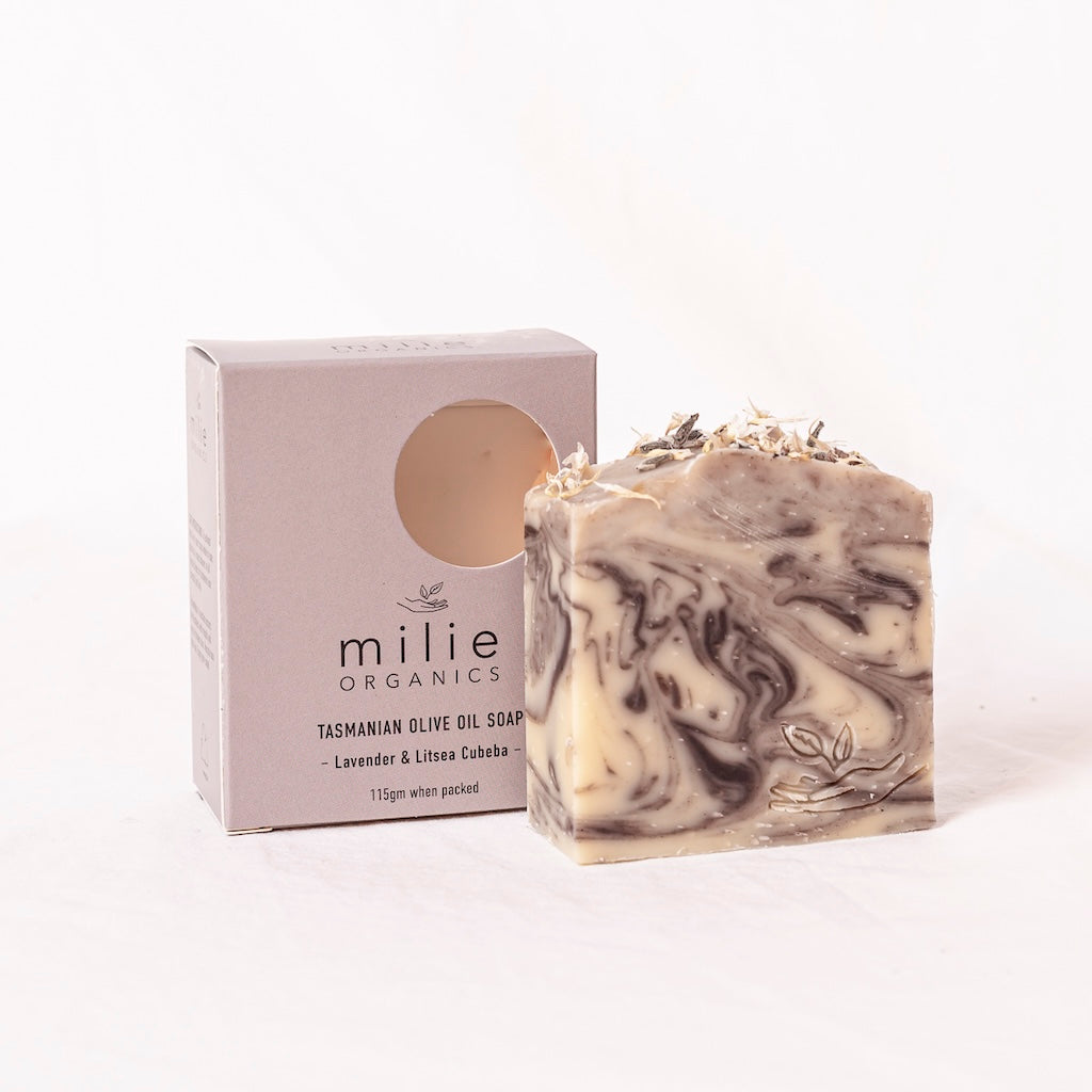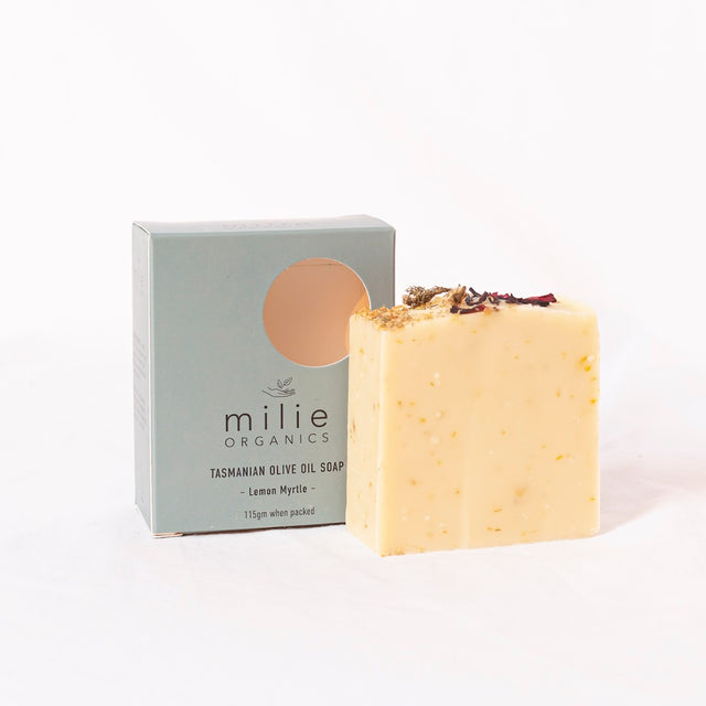 Milie Organics soaps are bade using a base of local extra virgin olive oil from the Coal River Valley. This means you can expect soft and silky skin, providing a gentle lather for even the most sensitive skin. Each bar of soap is carefully made, and every combination of ingredients serves a different purpose to nourish and soothe.