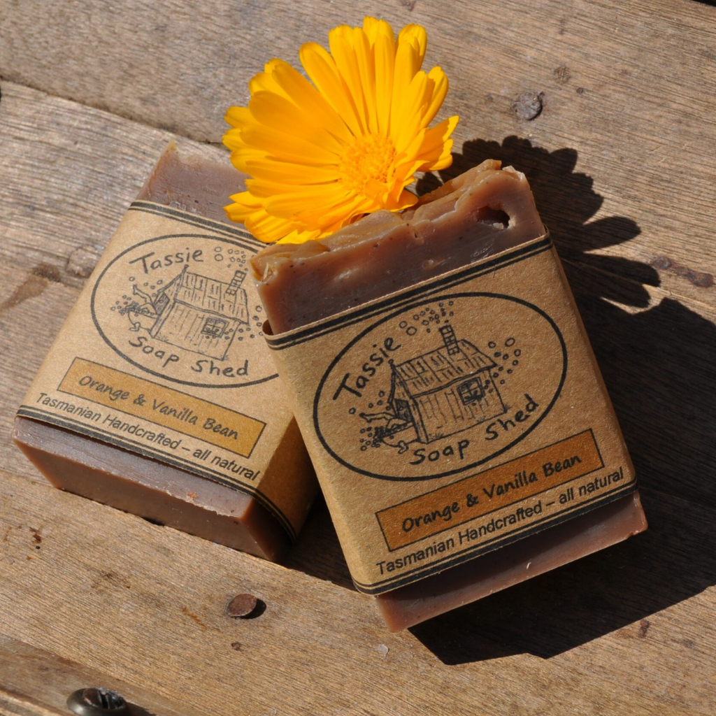 Ingredients: Orange & Vanilla Bean: Oils – Coconut, Olive, Castor, Avocado & Rice Bran, shea butter, Lye & Tasmanian Spring Water. Essential Oils – Orange, Cassia, Peru Balsam & Vanilla Oleoresin, Ground vanilla bean & Orange peel powder